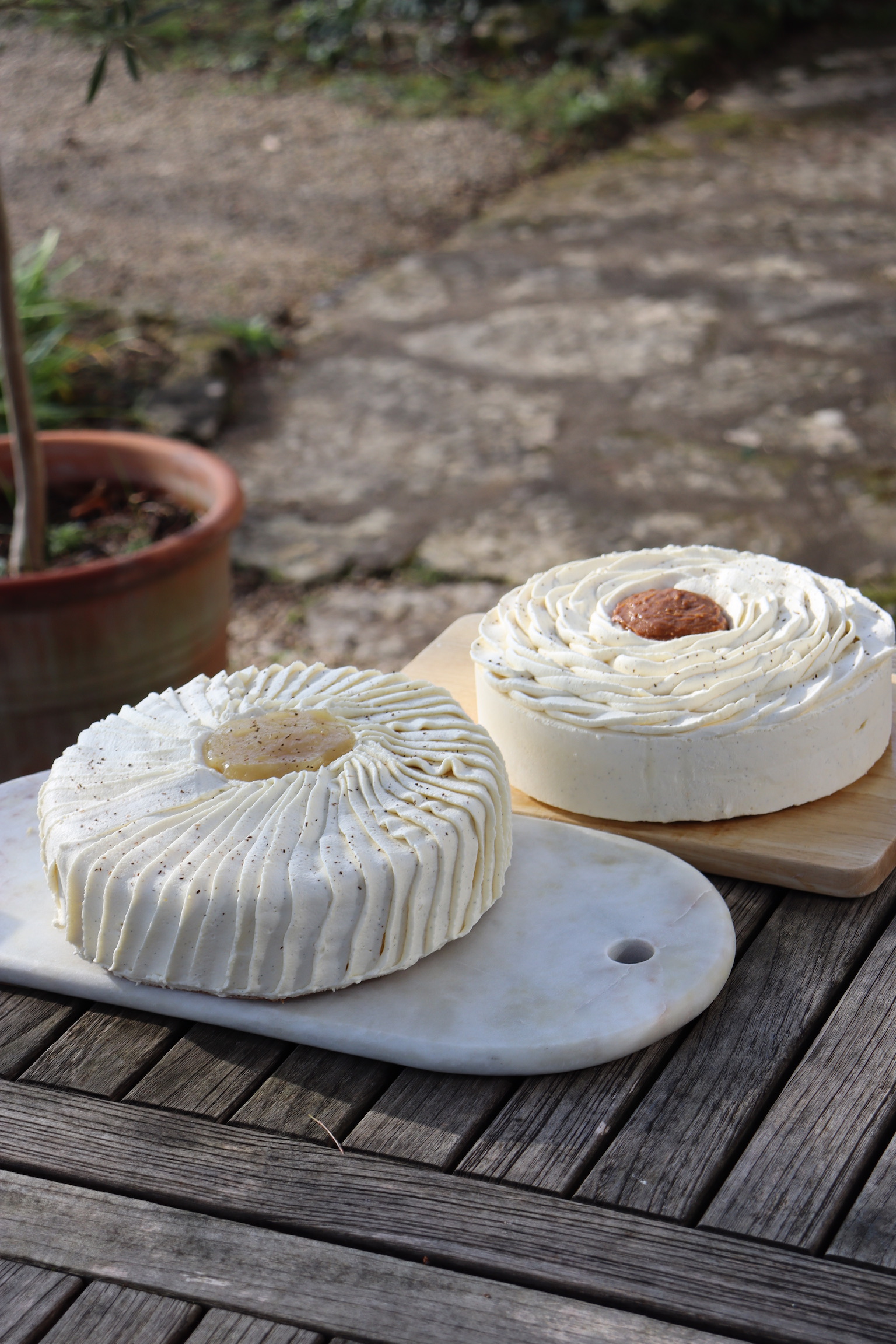 Un caramel à sec, décuit à la crème, monté en crémeux soyeux. Légèrement salé pour contrebalancer la poire.
