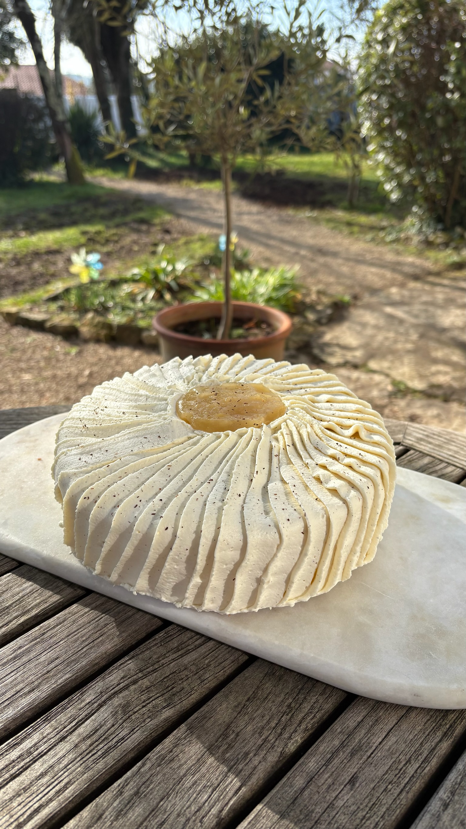 C'est un entremet autour de trois axes qui s'équilibrent vraiment bien ensemble : la douceur florale de la poire, la rondeur enveloppante de la vanille, et le côté épicé et légèrement amer du spéculoos qui vient trancher avec le reste.